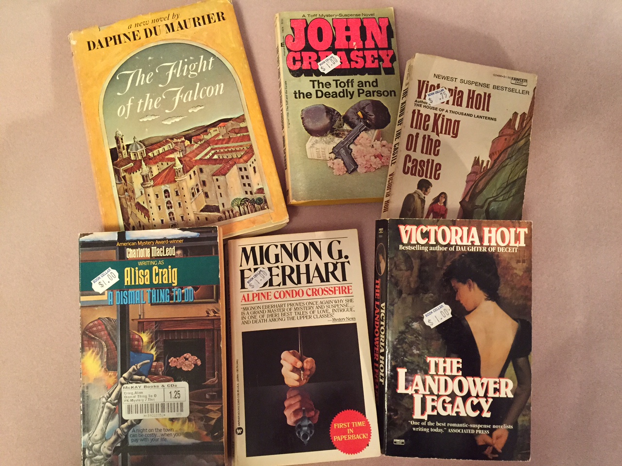 I picked up a couple of gothic romance novels, a thriller, and a cozy mystery.
